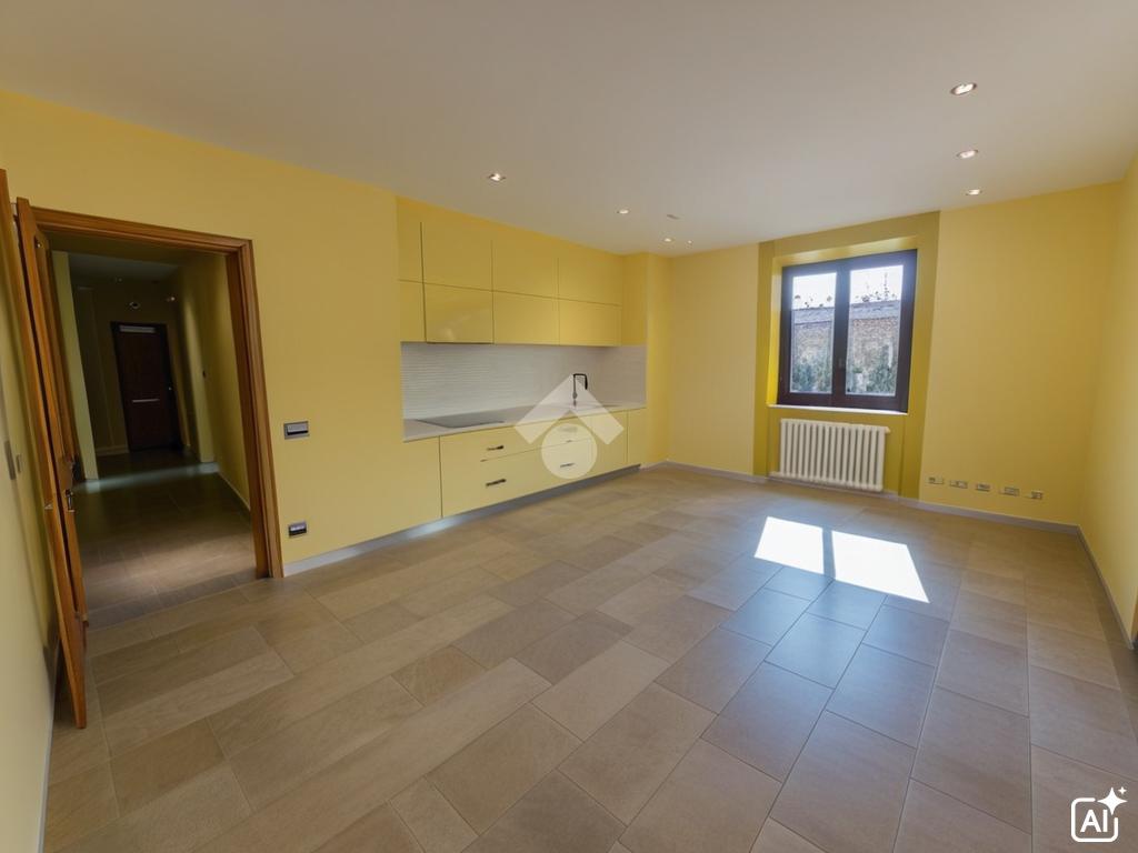 L’ingresso si apre direttamente sul divismpegno che divide i vari ambienti. La zona giorno è ampia, un ambiente unico e luminoso che comprende anche l’angolo cottura.