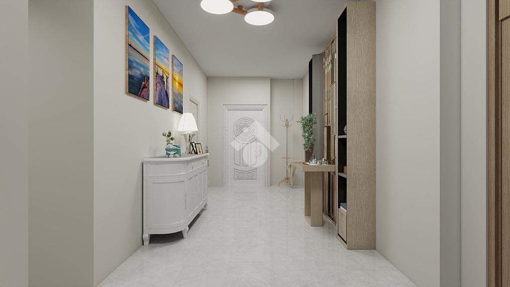 L’ingresso si apre su un comodo disimpegno che distribuisce in modo funzionale tutti gli ambienti. La zona giorno è composta da un luminoso soggiorno con parete cucina e accesso diretto al primo balcone.