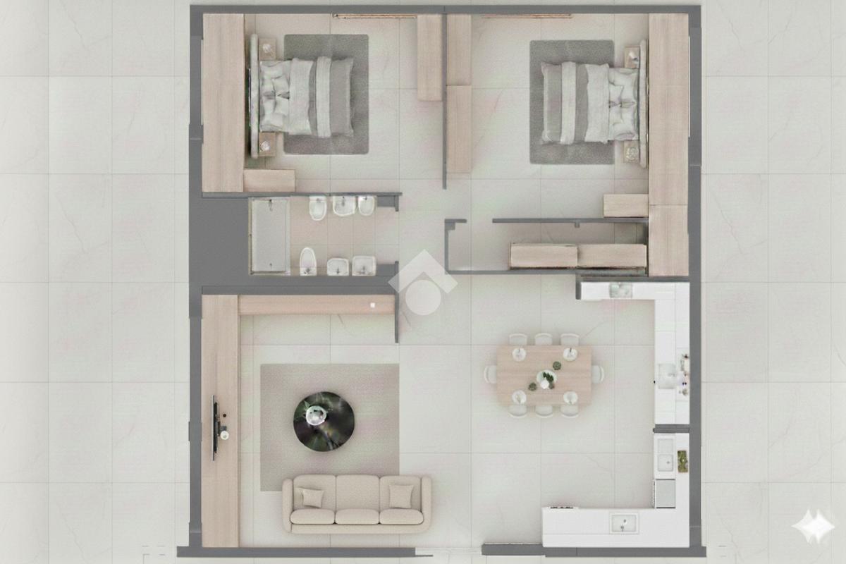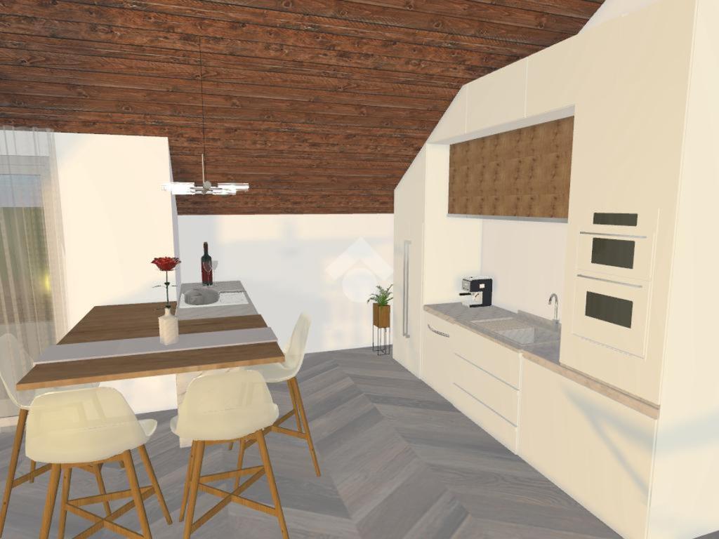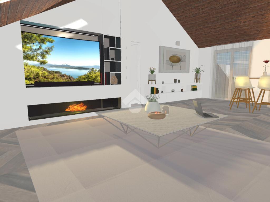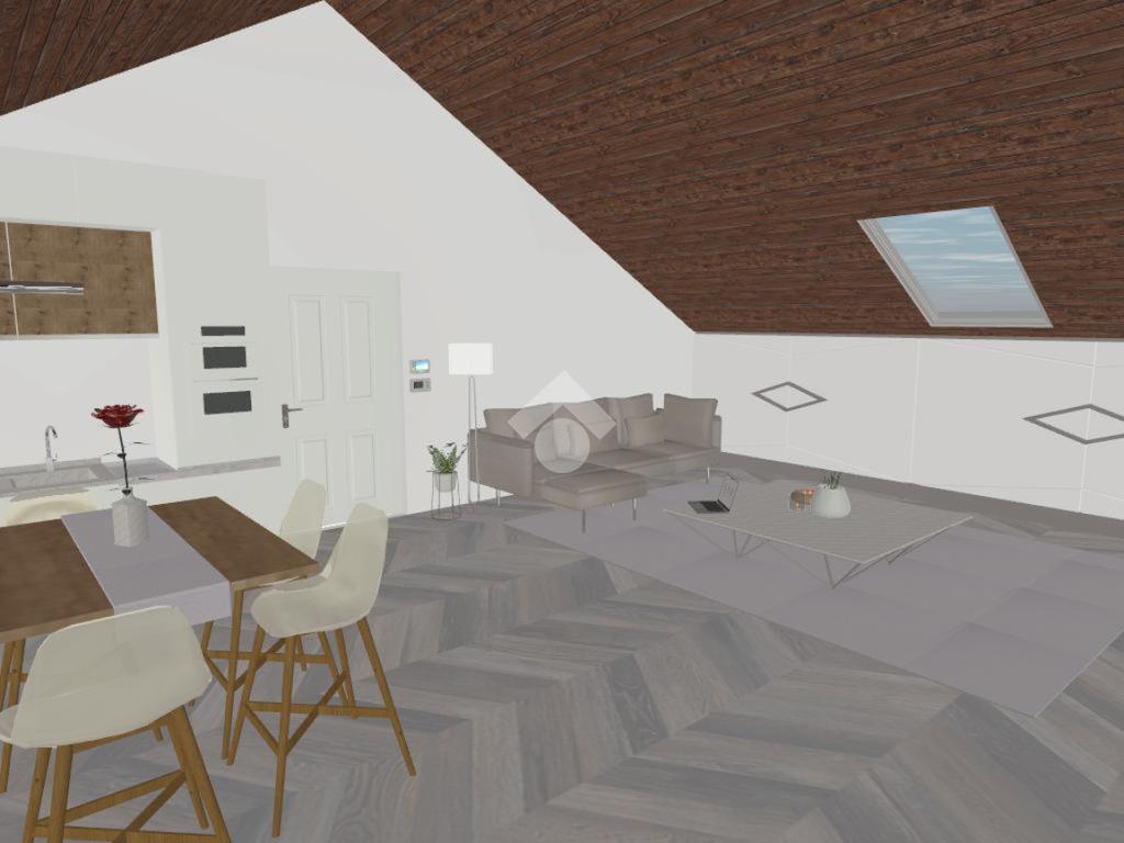 L’ipotesi progettuale prevede un ingresso su un luminoso soggiorno living con cucina a vista di circa 31 mq, concepito come ambiente centrale della casa, accogliente e ben distribuito, con la possibilità di realizzare un terrazzino che regala una suggestiva vista panoramica e un piacevole sfogo esterno.
