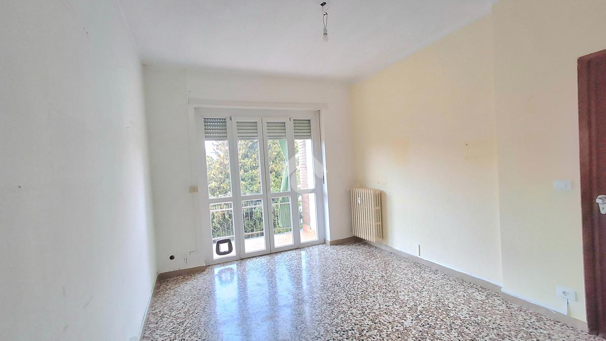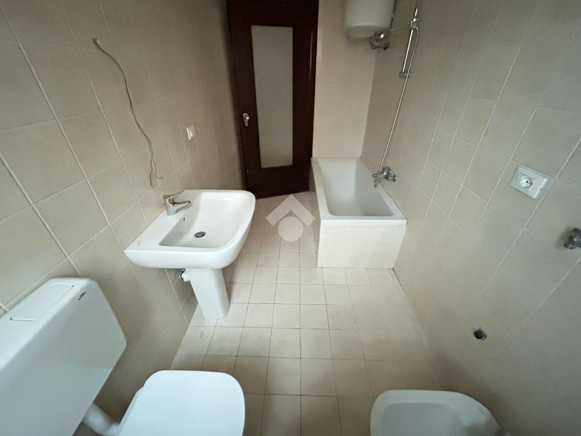 Proseguendo, la zona notte, ben separata, ospita due camere da letto, una matrimoniale e una singola, entrambe di generose dimensioni e con accesso diretto al balcone principale dell’abitazione. Completa il piano un bagno finestrato, arredato con vasca.