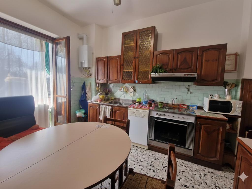L’ingresso si apre su un disimpegno che distribuisce in modo funzionale i vari ambienti della casa. La cucina è abitabile, spaziosa e luminosa, con accesso diretto al balcone dal quale si gode di una piacevole vista panoramica sulle montagne.