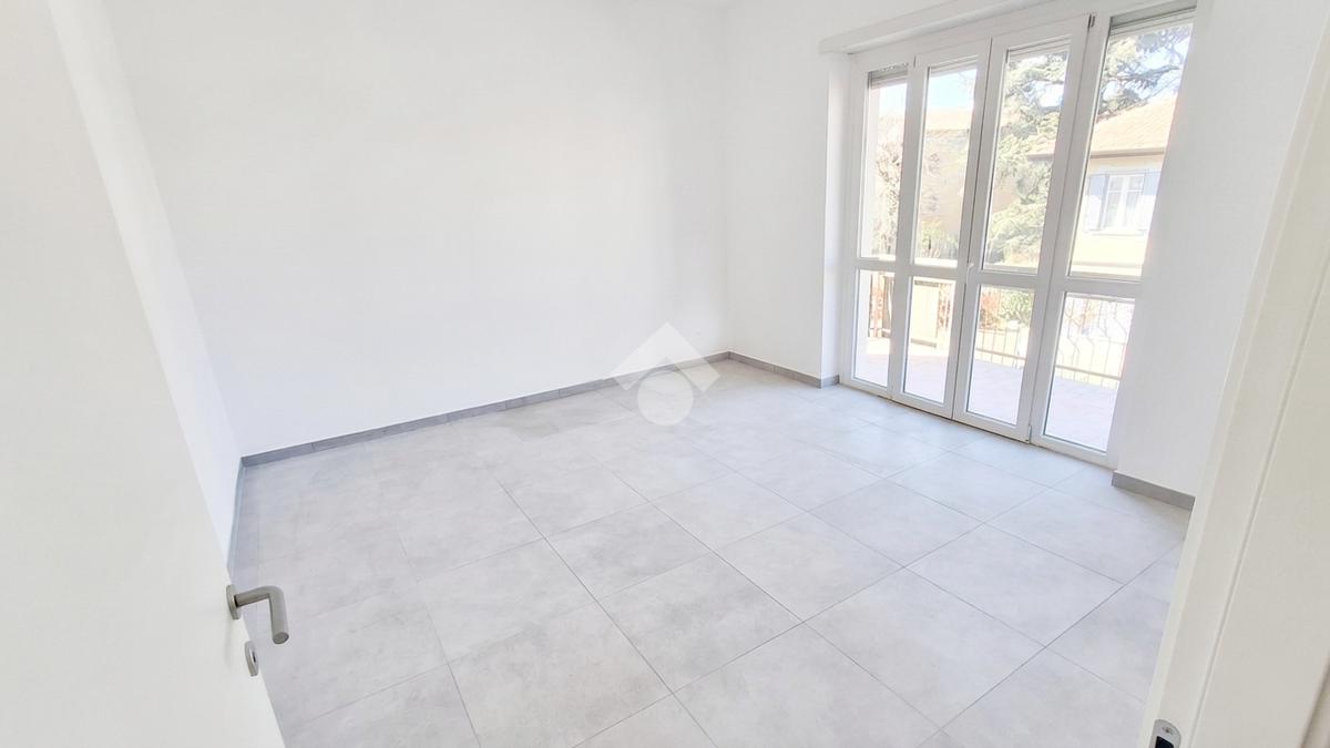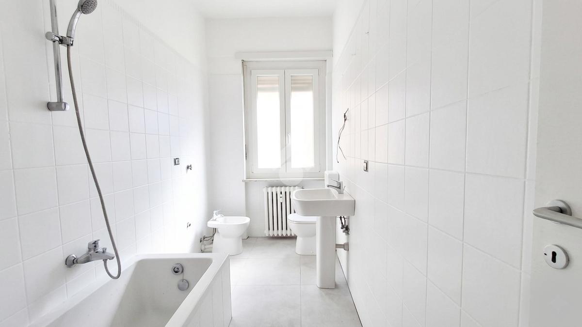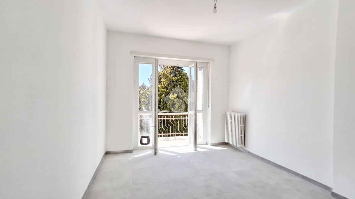 Proseguendo, la zona notte, ben separata, ospita due camere da letto, una matrimoniale e una singola, entrambe di generose dimensioni e con accesso diretto all'ampio balcone principale dell’abitazione. Completa il piano un bagno finestrato, arredato con vasca.