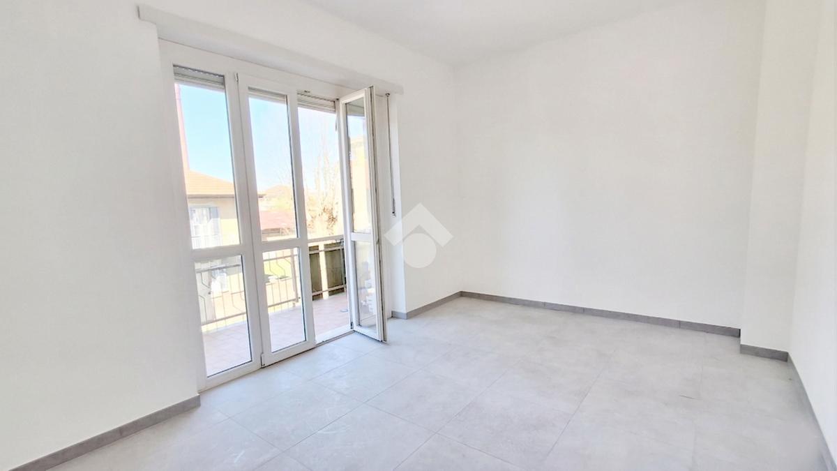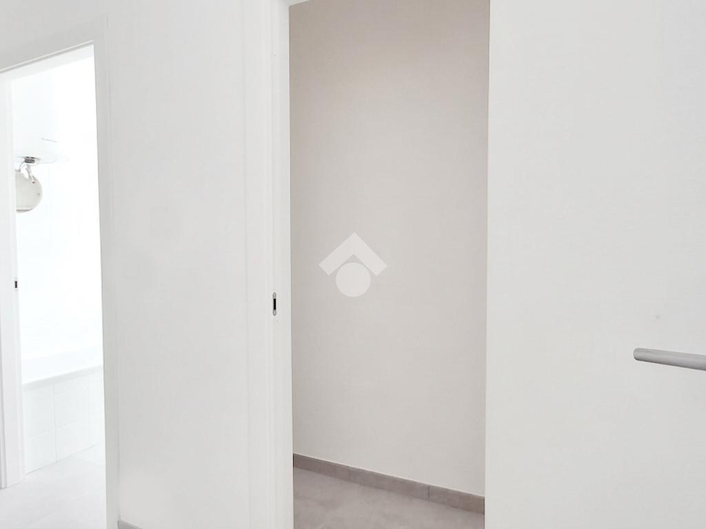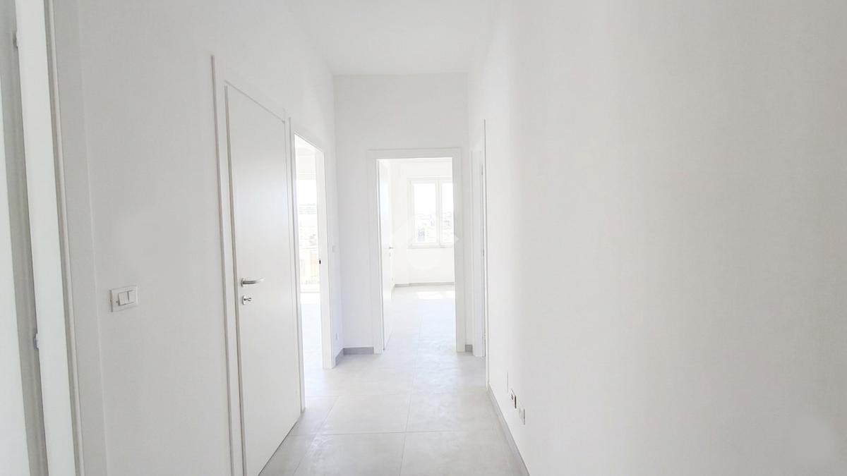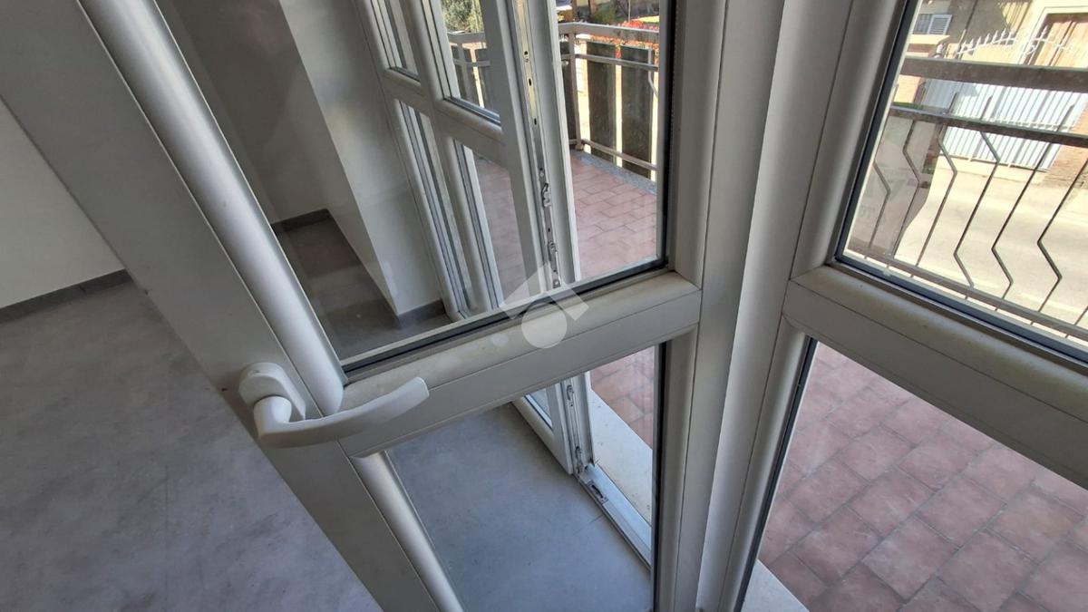 L’ingresso si apre su un comodo disimpegno, che permette una funzionale distribuzione degli spazi interni. La zona giorno è composta da un tinello con angolo cottura finestrato, ambiente luminoso dal quale, tramite porta finestra, si accede a un balcone pavimentato dotato di tende da sole.