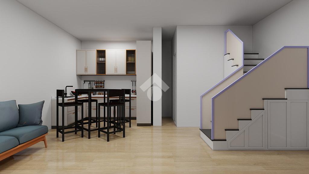 Il piano terra è diviso in una zona giorno living con parete cucina a vista ed un comodo bagno finestrato.
