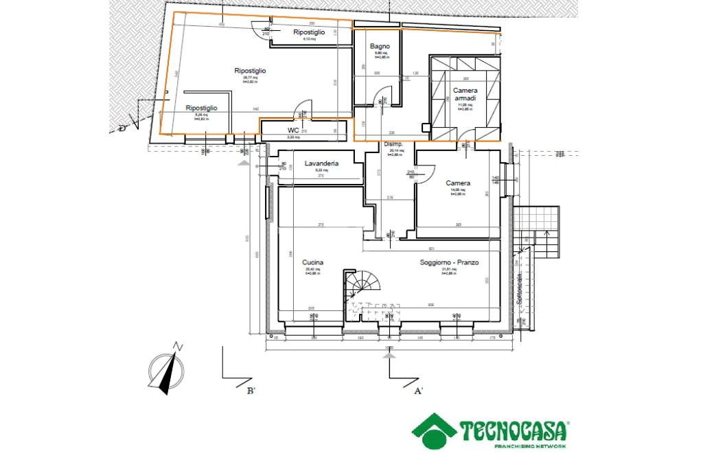 La villa si sviluppa su due livelli abitativi, il piano terra è composto da un ingresso su soggiorno con cucina abitabile a vista, disimpegno, camera matrimoniale con cabina armadi, bagno finestrato con doccia, spazioso ripostiglio adibito a cantina e locale tecnico/centrale termica. Inoltre vi è la presenza di un ampio locale laboratorio, ideale per chi desidera svolgere la propria attività lavorativa in casa e da un magazzino di circa 50 metri quadrati, perfetto come deposito o per parcheggiare varie autovetture.