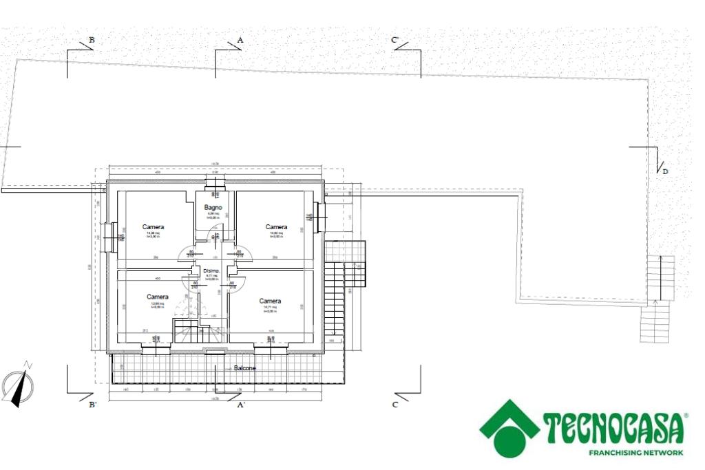 Il Primo piano, collegato internamente tramite una scala interna in muratura, ci conduce alla zona notte, composta da quattro camere da letto e un secondo bagno con doccia.