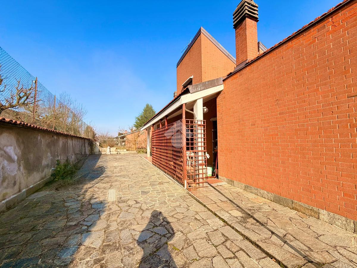 A pochi passi dal centro storico di Gassino Torinese, villa indipendente libera su quattro lati, sviluppata tutta su un unico livello e circondata da giardino privato.